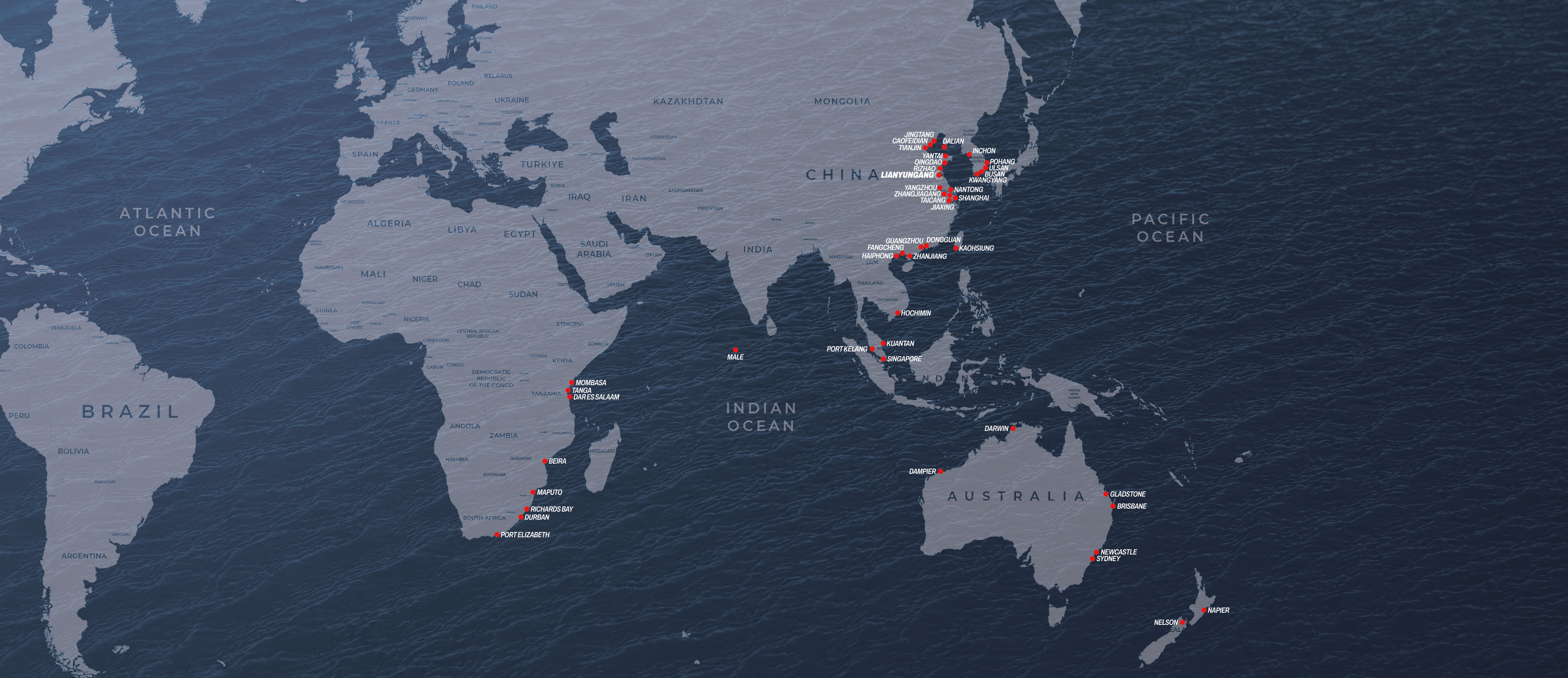 航线主营远东到南非、安哥拉、刚果金、刚果布、加蓬、喀麦隆、尼日利亚、加纳等非洲港口,远东到南美东巴西、阿根廷,远东到澳洲澳大利亚、新西兰等数条远洋航线。